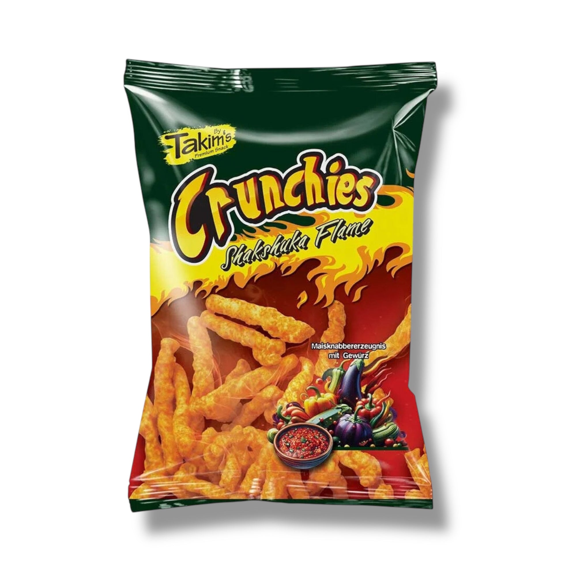 Maisgrieß, Sonnenblumenöl, Gewürzmischung (Zucker, Salz, Aroma, Paprika, Chilipulver, Zwiebelpulver, Knoblauchpulver, Geschmacksverstärker (Mononatriumglutamat), Farbstoffe (z. B. E160c)).